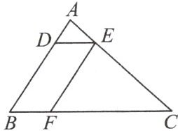 12. (杭州市中考改编)如图,在△ABC 中,点 D,E,F 分别在边 AB,AC,BC 上,连接 DE,EF.已知四边形 BFED 是平行四边形,$ \frac{DE}{BC}= \frac{1}{4} $.