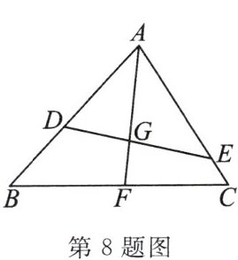 8. 如图,在$\triangle ABC$中,$AF是\angle BAC$的平分线,$D$,$E分别是边AB$,$AC$上的点,连接$DE交AF于点G$,若$\frac{AD}{AC}= \frac{AE}{AB}= \frac{2}{3}$,则$\frac{AG}{GF}= $