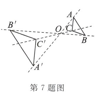 7. (贵阳市期末)如图,以点 O 为位似中心,把△ABC 放大为原图形的 2 倍得到△A'B'C',以下说法中错误的是(