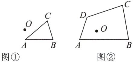 (2)如图②,将四边形 ABCD 缩小到原来的 $ \frac{1}{2} $,且位似中心选在图形的内部图中的点 O 处.