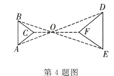 4. 如图所示,△ABC 与△DEF 是位似图形,O 为位似中心,位似比为 $ 2:3 $,$ AB = 4 $,则 $ DE = $