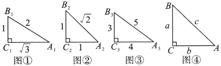 ;(2)如图 ④,在 $ Rt\triangle ABC $ 中,$ \angle C = 90^{\circ} $,$ \angle A $,$ \angle B $,$ \angle C $ 的对边分别是 $ a $,$ b $,$ c $,利用三角函数的定义和勾股定理,证明你的猜想;