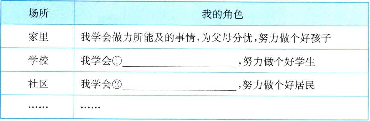 (2) 请根据上表内容,说说扮演好这些社会角色对我们的成长有哪些帮助。