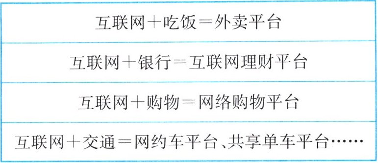 | 互联网+交通=网约车平台、共享单车平台…… |