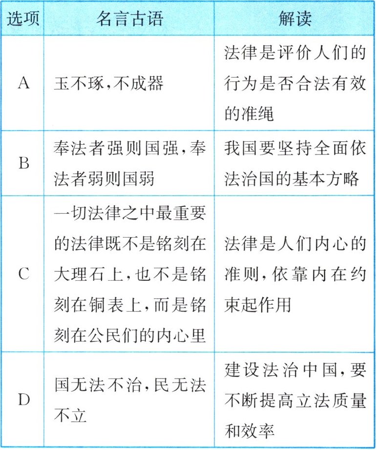 |A|玉不琢,不成器|法律是评价人们的行为是否合法有效的准绳|