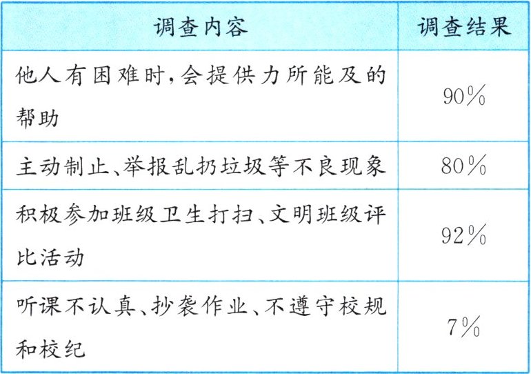 (1)①大多数学生具有较强的责任意识,能够积极参与社会和学校的公益活动。②少数学生的责任意识不足,需要加强教育和引导。