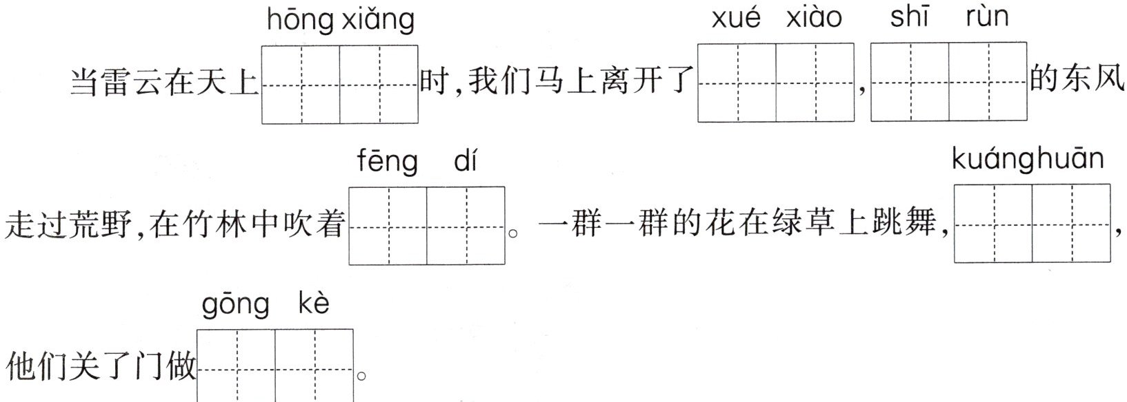 三、结合语境,选择恰当的拟声词填在括号里。(填序号)