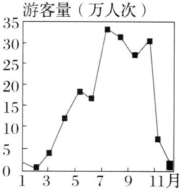 九寨沟是我国著名的风景旅游胜地,并拥有“世界自然遗产”和“世界生物圈保护区”两项国际桂冠。右图是九寨沟某一年客流量季节分布曲线图,看图后完成练习。