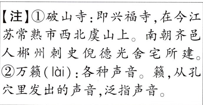 )A. 起首两句写诗人在清晨入破山寺(兴福寺)时,旭日初升,光照树林。