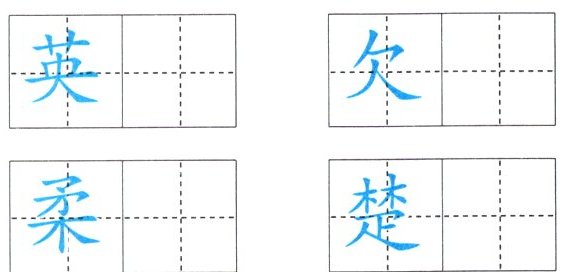 1. 通过观察,我发现写“柔”“未”和“英”等字时要注意(