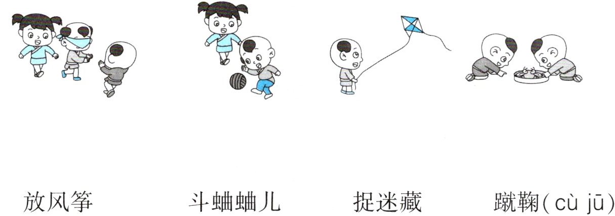 七、司马光生活在宋朝,当时的小朋友们会玩很多有趣的游戏,你知道这些游戏的名字吗?试着连一连吧!