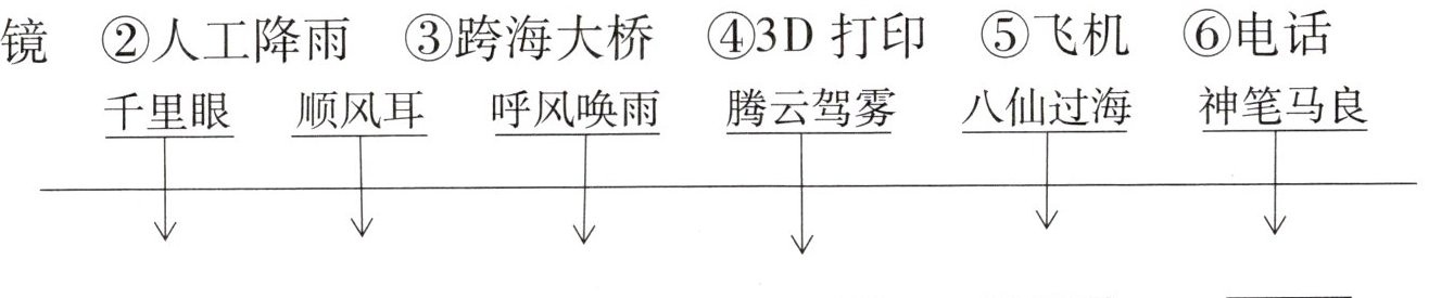 二、通过查阅资料,我们了解到科技发展使神话中的幻想变为了现实,照样子选一选。
