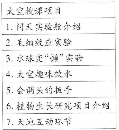 (1)“天宫课堂”第三课由陈冬、刘洋、蔡旭哲进行太空授课。(