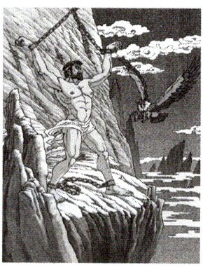 (2) 普罗米修斯摇摇头,坚定地回答:“为人类造福,有什么错?我可以忍受各种痛苦,但决不会承认错误,更不会归还火种!”