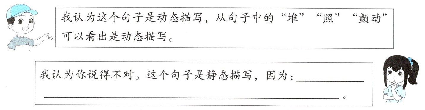 “堆”表示堆积完成的状态,并不是动作。通过“似乎”一词可以看出“照”“颤动”是作者的想象,并不是真实的动作