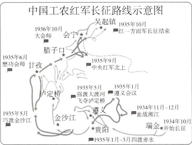 中国工农红军长征路线示意图