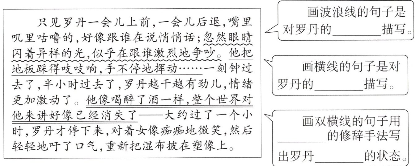 宇浩记录下了同学下棋时入迷的场景,请运用上面的方法帮助宇浩把下面的语段补充完整。