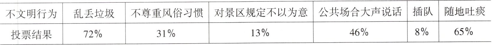 某网站进行了一项“文明出境游”调查,盘点出国民心目中“最不文明的出境游行为”。