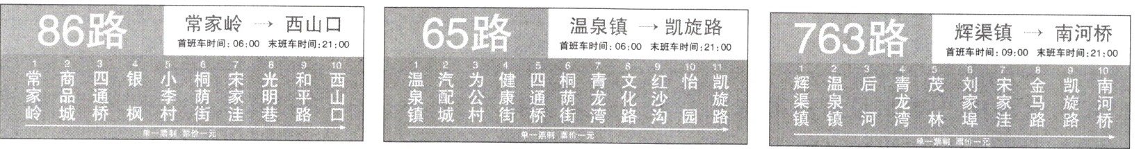 )A. 先坐65路,由温泉镇到四通桥,然后坐86路,由四通桥到宋家洼。