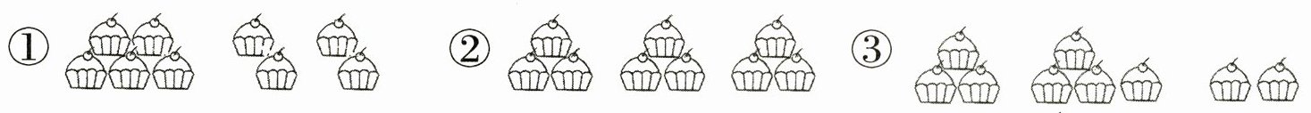 1. 把 9 个蛋糕平均分给 3 个小朋友,下列分法中,是平均分的为(