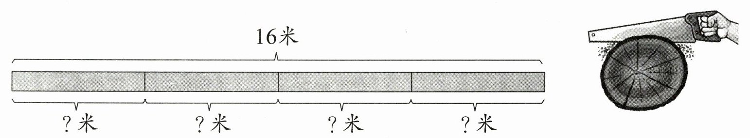 1. 把一根木料平均分成4份,每份多少米?(4分)