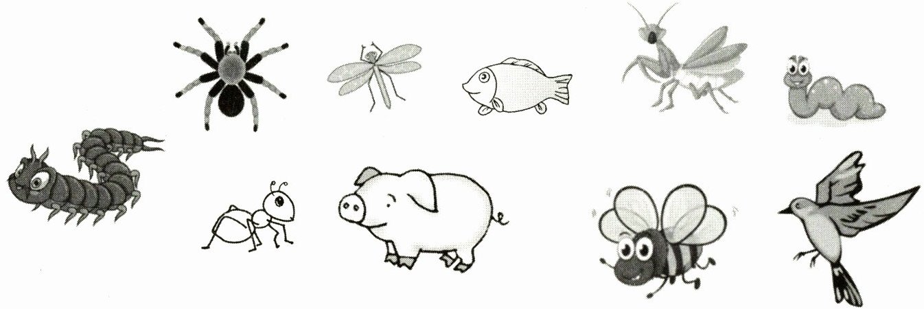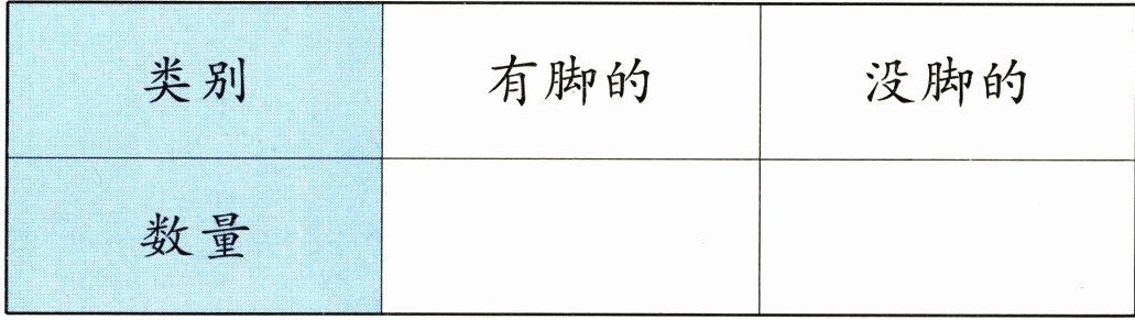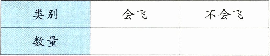 二、把动物分成两类,并将结果整理在表格中。(每小题4分,共8分)