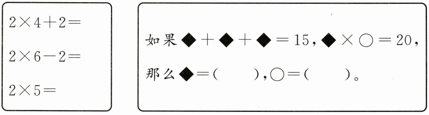)3. 加法算式$4+4+4+2$可以写成乘法算式$4×4$。(