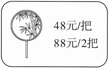 5. 中国扇文化有着深厚的文化底蕴,“团扇”是圆形有柄的扇子。张阿姨带了600元,最多可以买几把下面的团扇?还剩多少钱?(6分)