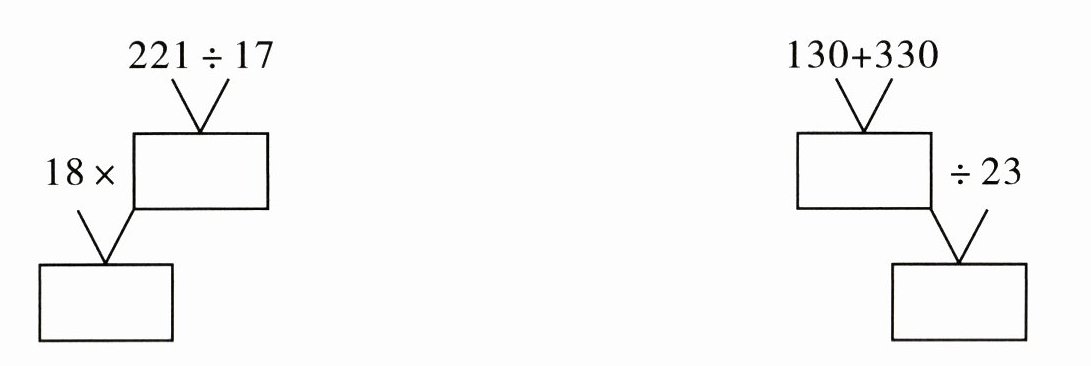 13 234 18×(221÷17)=234 460 20 (130+330)÷23=20