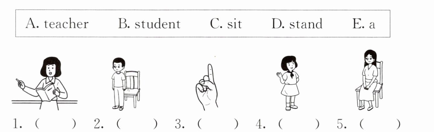一、看图认单词。给下列图片选择正确的单词,并将其字母标号填在图下的括号内。