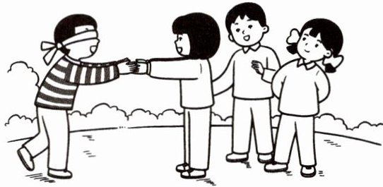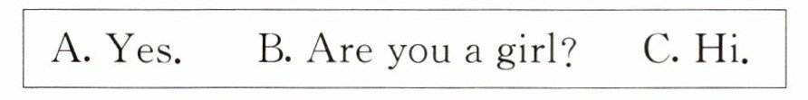 二、小朋友们正在玩捉迷藏。根据图意选择方框中合适的句子补全对话,并将其字母标号填在横线上。