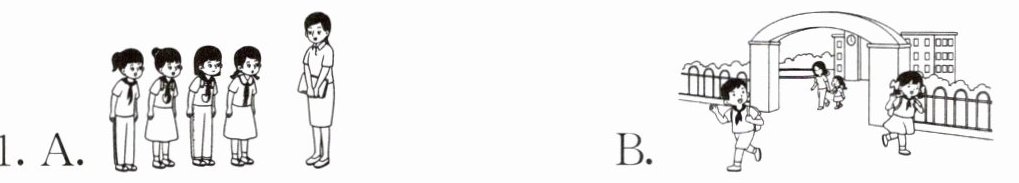 三、听录音,选出与录音内容相符的图片,并将其字母标号填在题前的括号内。每小题读两遍。