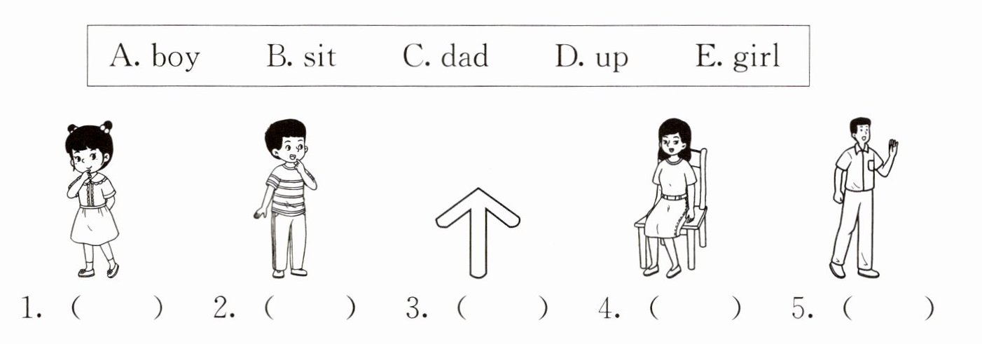 一、看图认单词。给下列图片选择正确的单词,并将其字母标号填在图下的括号内。