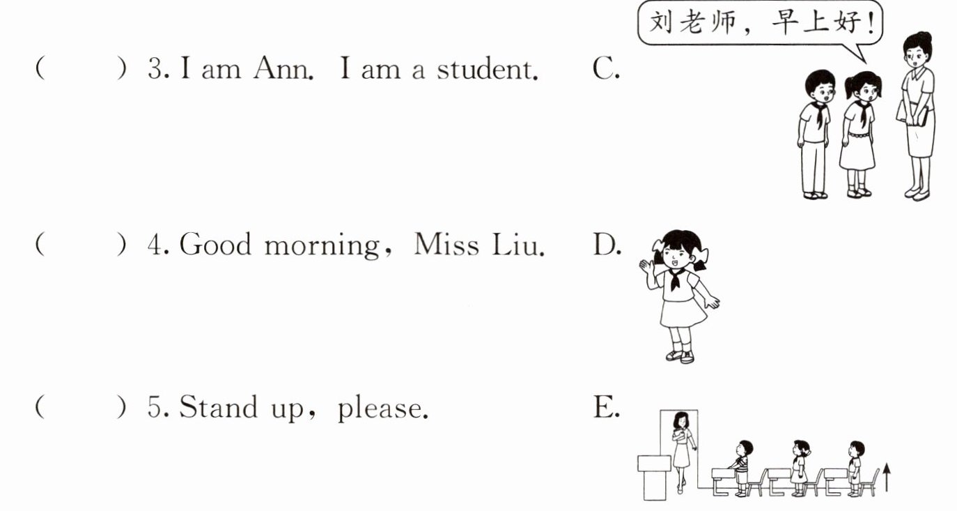 四、请读句子,并仔细观察图片,选出与句子内容相符的图片,并将其字母标号填在题前的括号内。