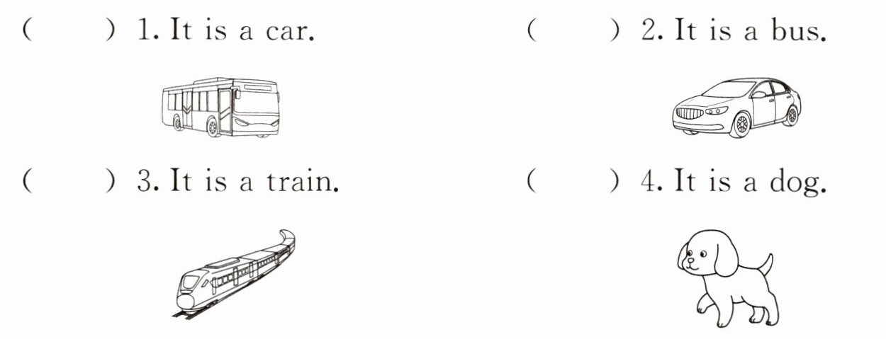 四、读一读下面的句子,判断下列句子与图片内容是否相符,相符的在括号内写 “T”,不相符的写 “F”。