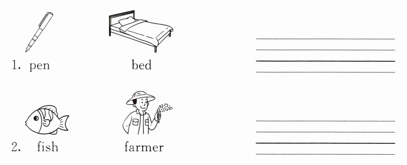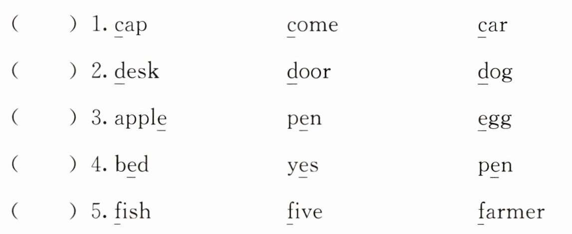 二、请读一读下面的单词,找出每组单词中相同的字母,并把这个字母的大小写形式写在四线三格中。每个大小写形式写两遍。