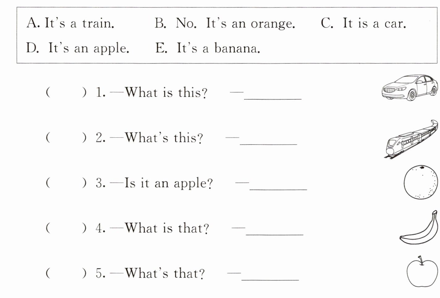 四、认真观察图片,根据图意从方框中选择合适的句子补全对话,并将其字母标号填在题前的括号内。