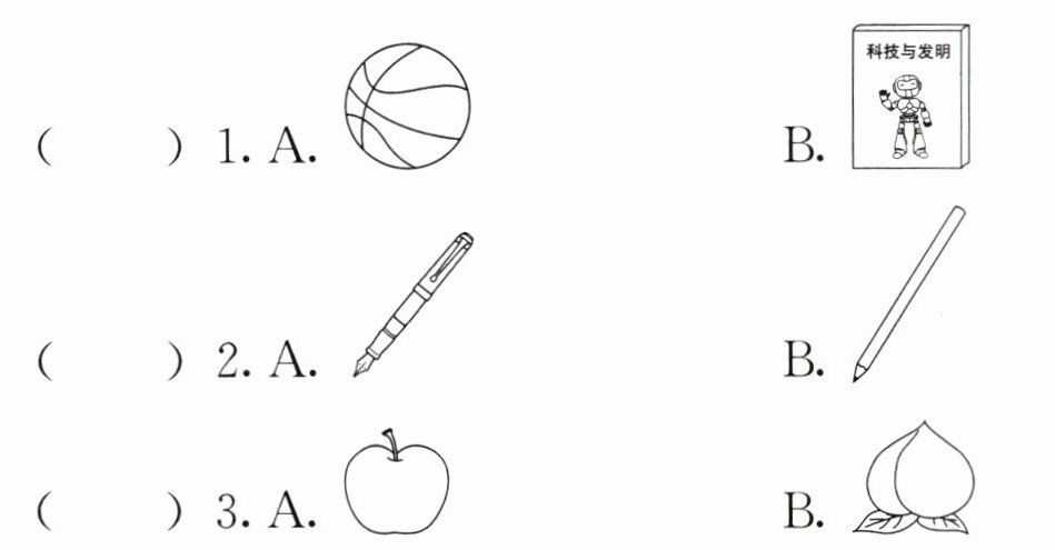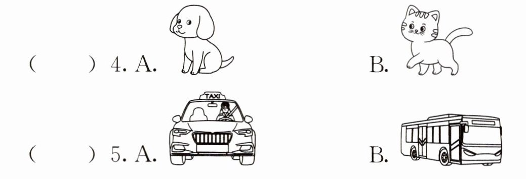 三、听录音,选出与录音内容相符的图片,并将其字母标号填在题前的括号内。每小题读两遍。