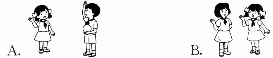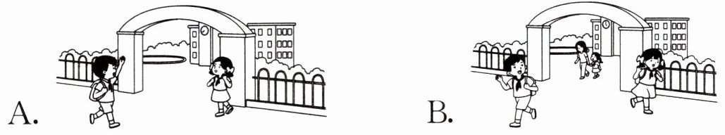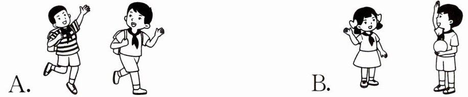 四、请读对话,并仔细观察图片,选出与对话内容相符的图片,并将其字母标号填在题前的括号内。