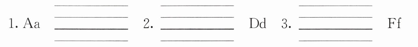 一、请按字母表的顺序在下面的四线三格中写出下列字母相邻字母的大小写形式。每个大小写形式写一遍。