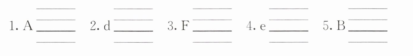 二、看图认单词 。给下列图片选择相应的单词,将其字母标号填在括号内,并把单词写在四线三格中。