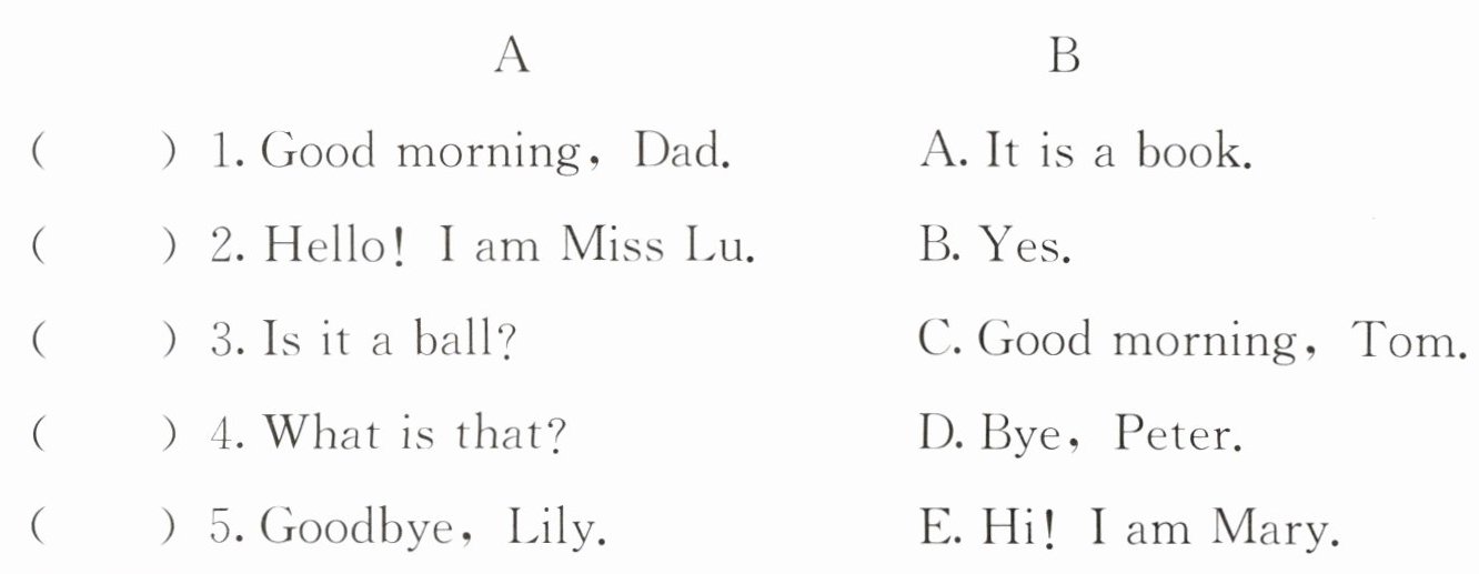 七、请从 B 栏中找出 A 栏句子的应答语,并将其字母标号填在题前的括号内。