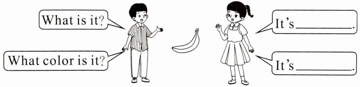 三、同学们是如何就一个物品和颜色进行问答的?请结合上面的录音,补全下面的对话,和你的小伙伴说一说吧。