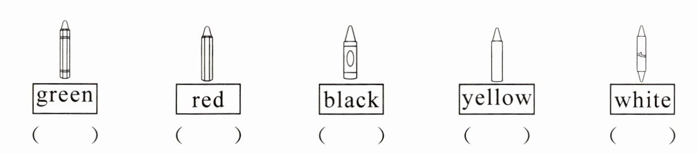一、听录音,根据录音顺序,用数字1—5给下列蜡笔排序。每小题读两遍。
