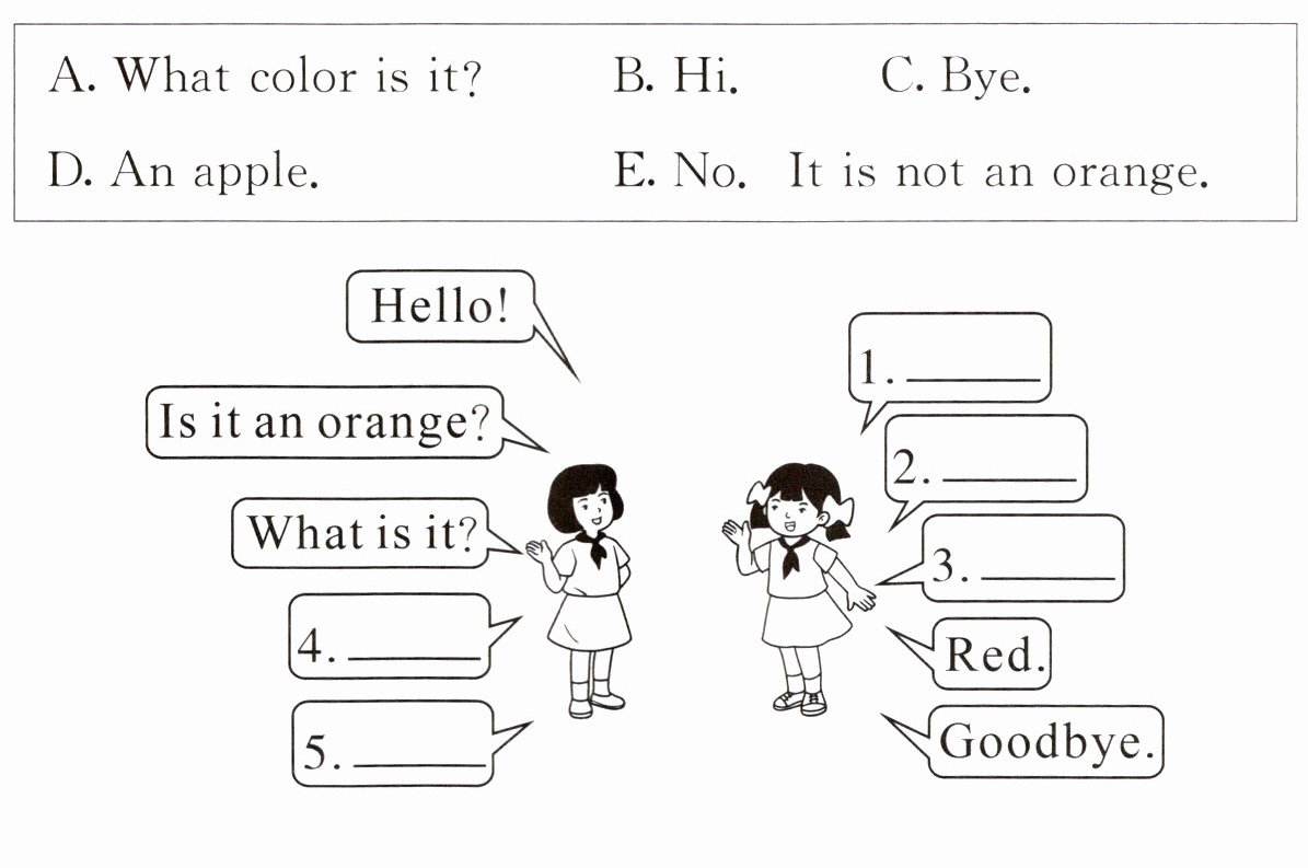 Ann和Lingling正在谈论物品的颜色。请你联系上下文,从方框中选出句子补全对话,并将其字母标号填在横线上。