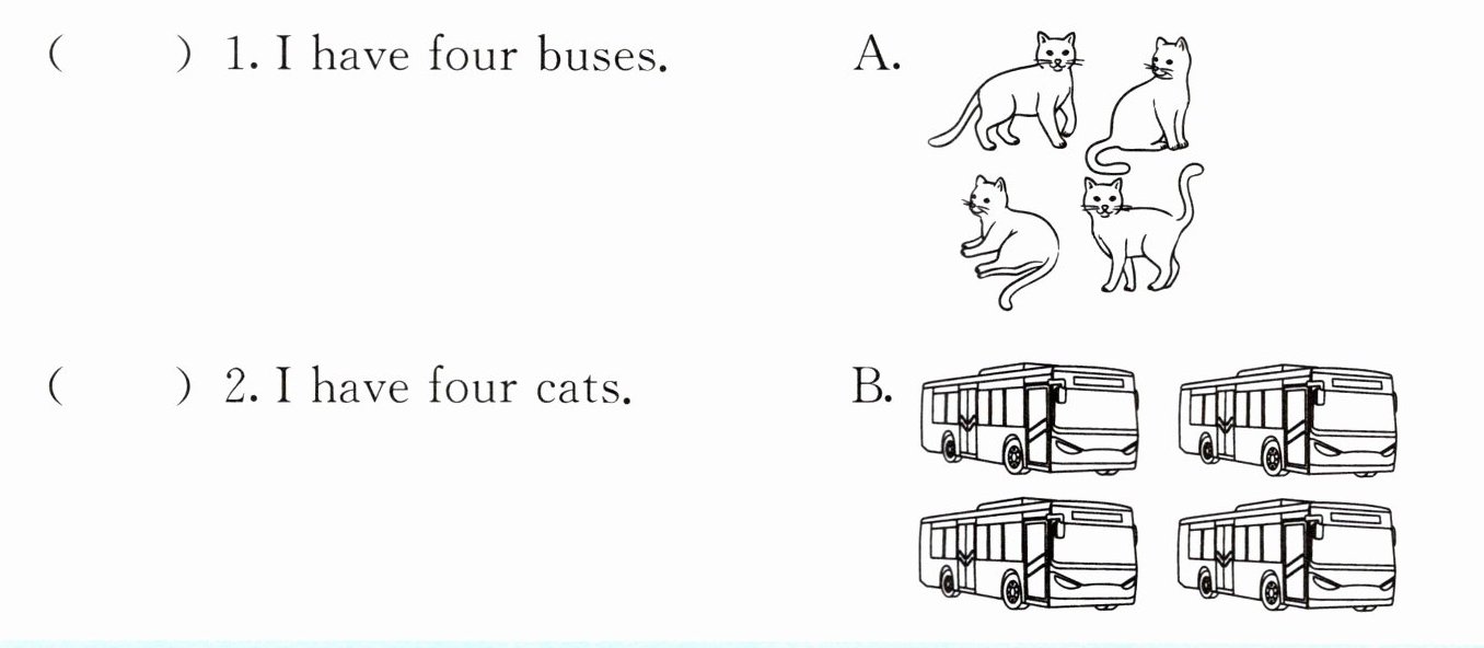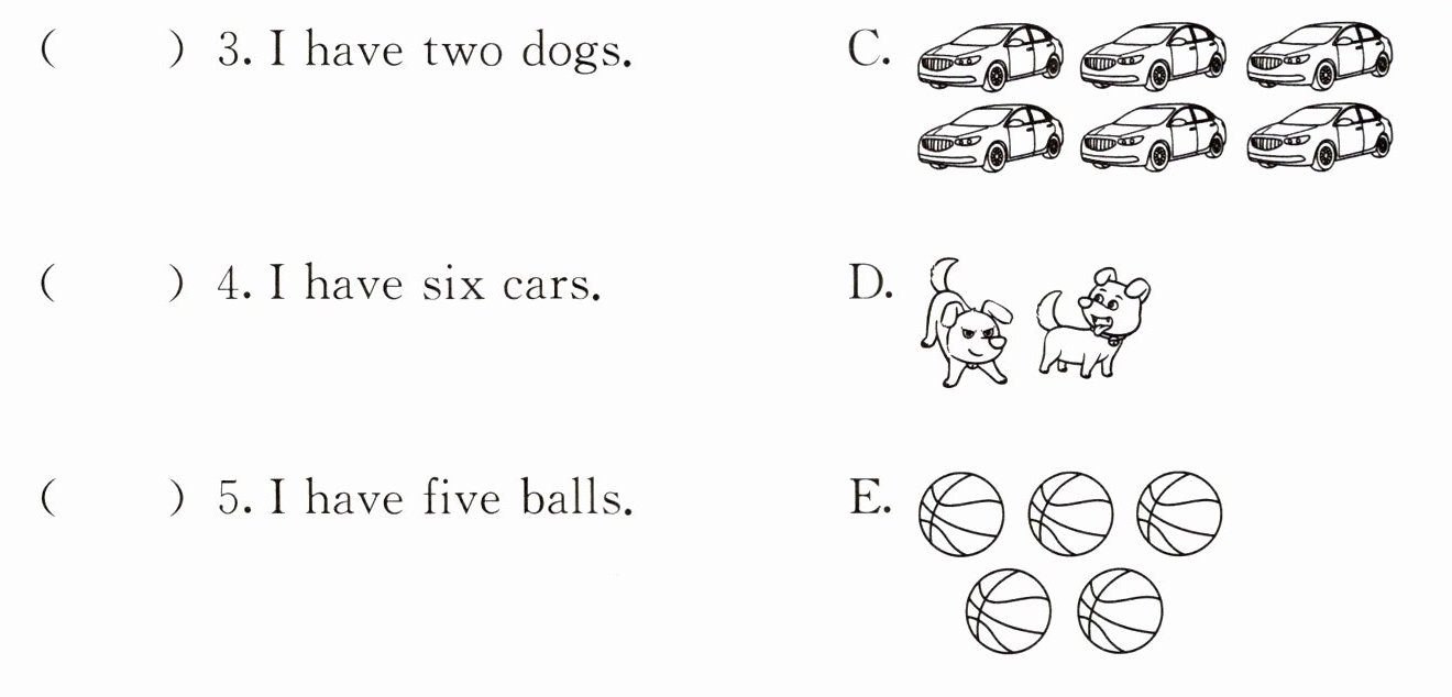 五、请读句子,并仔细观察图片,选出与句子内容相符的图片,并将其字母标号填在题前的括号内。