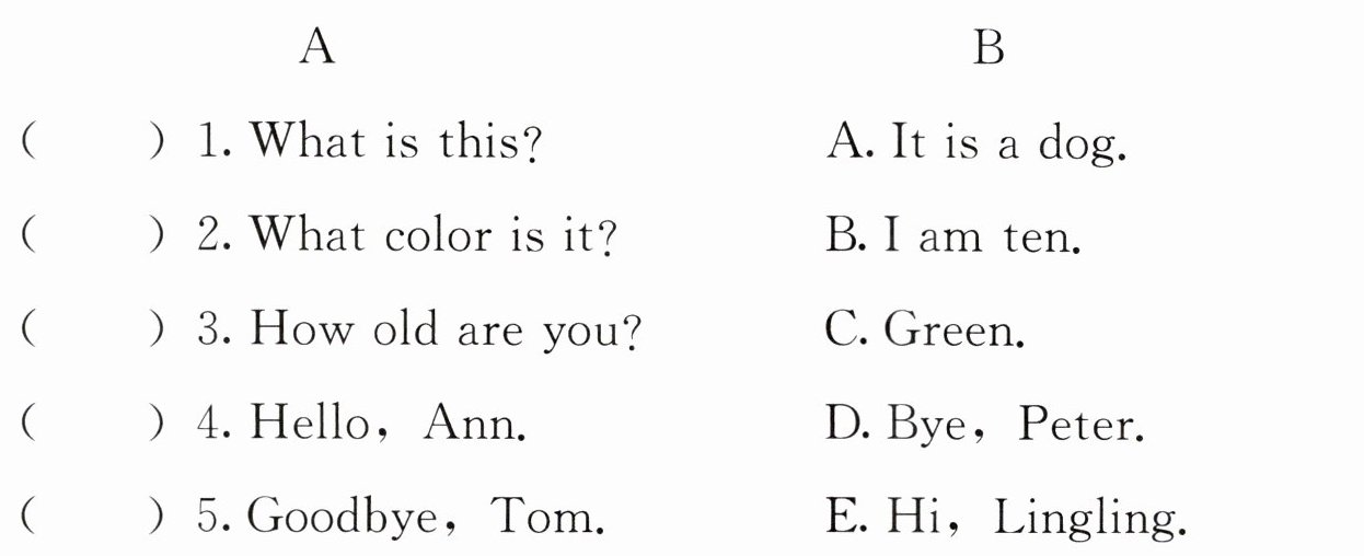 四、请从B栏中找出A栏句子的应答语,并将其字母标号填在题前的括号内。