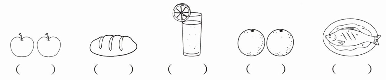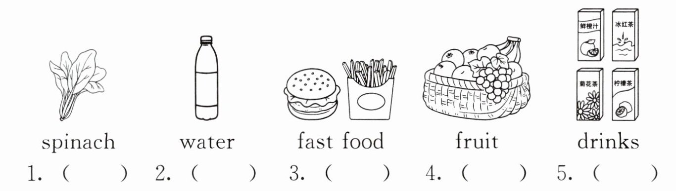 二、你认识下面的食物吗?请你仔细观察图片并读一读单词或短语,在利于我们身体健康的食物下面的括号里写 “T”,不利于的写 “F”。