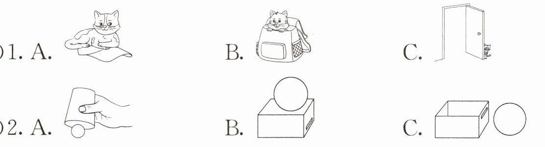二、听对话,选出与对话内容相符的图片,并将其字母标号填在题前的括号内。每小题读两遍。