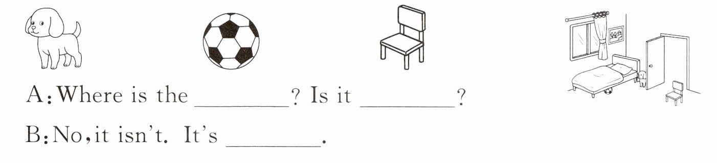 三、以下物体在哪里?请你结合以上录音,补全下面的对话,走进房间里找一找吧!